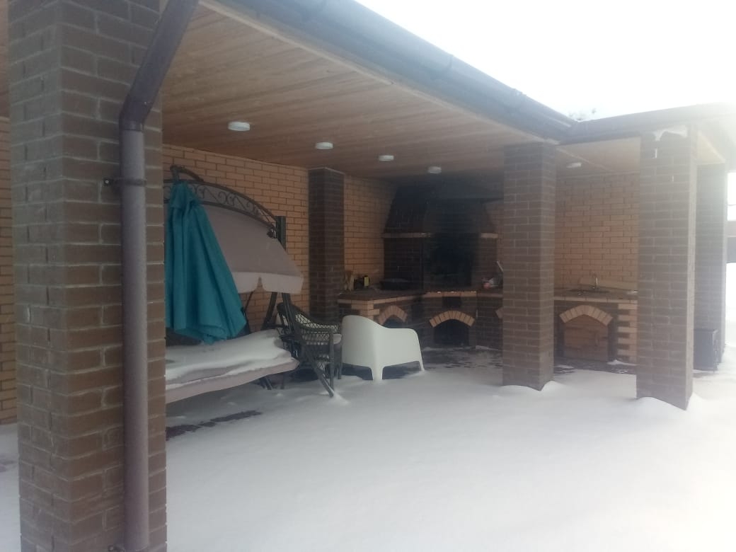 В селе Ленинское нами был построен 2х этажный кирпичный дом,баня из бруса, гараж и беседка с барбекю